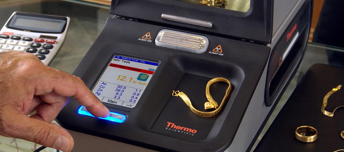 Lo spettrometro Niton Thermo Scientific DXL, veloce e preciso, è un analizzatore XRF di metalli preziosi da banco per il laboratorio.